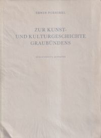 Poeschel, Erwin: Zur Kunst- und Kulturgeschichte Graubündens. Ausgewählte Aufsätze. Zürich: Berichthaus 1967. Lex.-8°. 188 S., S. 137 – 176 Abbildungen, Bibliographie, broschiert (gelöstes Ex Libris von Innendeckel; sonst gut erhalten)